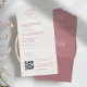 Lovely chic and simple wedding invitation, featuring a all in one design with includes a tear-off RSVP section with convenient QR code. Lovely couple monogram displayed on the inside top flap in a combination of contemporary fonts in dusty pinks. Text throughout comes in dusty pink, against an elegant ivory background. The outside jacket includes text in ivory against the same dusty pink background. Fully customizable.