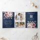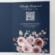 Dusty Pink Roses Navy Blue QR Code Wedding Tri-Fold Invitation