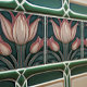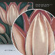 Dusty Pink Tulips on Blue Symmetric Art Nouveau Tile