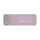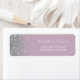 Le bord gauche de cette élégante étiquette d'adresse de retour mariage moderne présente une fausse parties scintillant argentée. Le texte personnalisable combine écriture blanche et polices de caractères sur cuivre sur un arrière - plan pourpre lavande poussiéreux.