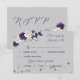 Dusty purple and white flowers grey rsvp card