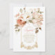 Invite loved ones to celebrate a beautiful spiritual milestone with this elegant blush floral and gold ornate baptism invitation, perfectly designed for a baby girl's christening or dedication. This breathtaking watercolor design features a lush, romantic canopy of blush pink peonies, cream roses, and delicate botanical greenery cascading softly over your personalized event details. A subtle cross at the top sets a reverent tone, while the beautiful typography—featuring a sophisticated blend of classic serif fonts and sweeping coral-pink calligraphy—adds a touch of timeless grace. Your customized ceremony and reception information is elegantly enclosed within a thin, chic gold border that is gracefully anchored by intricate, vintage-inspired gold baroque scrollwork at the bottom. Fully adjustable to suit your family's needs, this premium template allows you to effortlessly personalize the name, date, church, and RSVP details, making it an exquisite choice for a spring garden christening, a traditional church baptism, or any upscale celebration of faith.