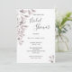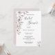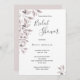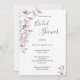 A trendy bridal shower invitation in white and dusty rose, pink. A chic white background on the front. Decorated with dusty rose coloured botanical sprigs and foliage. Modern large handlettered script, typography with the text: Bridal Shower. Templates for the bride to be's name and party details. Dark grey text.