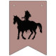 The bunting design adds a fun, celebratory atmosphere to any venue, whether you're hanging it indoors or outdoors. It's perfect for framing the party space or adding a touch of personality to a photo booth area or entrance. The combination of the dusty rose colour (or another coordinating background) and the bold black text ensures the design is both stylish and easy to read, while the cowgirl and horse vectors make it even more memorable.