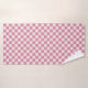 Pink and white checkerboard pattern with evenly spaced squares. The design is simple, creating a playful and retro feel.