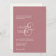 Minimalist & chic. This elegant and simple wedding invitation features a lovely set of contemporary fonts and script accent. The front of the card includes a combination of trendy dusty rose colours. Couple names are repeated at the back in dusty rose, against a creamy ivory background.