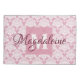 This beautiful pillow case features a classic white damask pattern over a dusty rose or pink background. The design is personalized with a monogram initial letter as well as a customizable name. Perfect for decorating any bedroom, apartment or dorm room. Great gift for a girl going off to college who wants a classic yet elegant style on her bed.