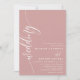 Invite loved ones to celebrate your special day with this elegant dusty rose wedding invitation. Featuring a minimalist design with a beautiful calligraphy script for the word "wedding" and clean, modern typography for the details, this invitation sets the tone for a sophisticated and memorable event. The soft dusty rose colour and simple lines add a touch of grace and refinement, making it ideal for a stylish wedding celebration. Customize the details to create a unique and beautiful invitation for your wedding day.