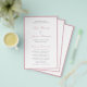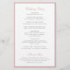 Simple budget wedding program flyer with a thin border along with your names and headers in an elegant script in dusty rose pink. The classic, traditional layout makes this design great for a formal wedding. These cheap wedding programs are printed on sheets of paper for a budget friendly option.