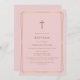 Dusty Rose Elegant Gold Typography Cross Baptism Invitation