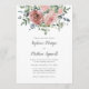 These wedding invitations feature watercolor dusty roses with eucalyptus leaf foliage. Personalize them with your text. Matching wedding suite and reception products also available.