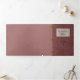 Fairy tale style wedding invitation done in a dusty rose coloured, antique book looking tri fold. The outside front is done in an old antique dusty rose book cover look, with graphics of gold decorations. The inside is done in antique looking paper. The inside middle section has a custom photo slot ready for your picture. Personalize all the text fields for your special wedding announcement.