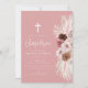 bohemian dusty rose floral cross design baptism card. The text and colours can be edited.