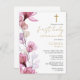 Cette élégante carte postale d'invitation à la première communion sainte et florale transparente et poussiéreuse rose peut être personnalisée avec vos informations en typographie chic avec votre monogramme au verso. Conçu par Thisisnotme©