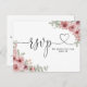 An elegant heart script dusty rose floral RSVP card. The reverse features your details and a fun guest song request. Designed by Thisisnotme©