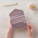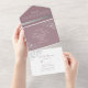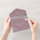 Celebrate your love with this romantic all-in-one wedding invitation featuring a dusty rose background, hand-drawn floral accents, and an elegant calligraphy script. The back includes a space for a photo, while the attached RSVP card offers meal selections and easy return info for guests. A coordinating website link can be added to the flap for extra details.