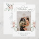 Dusty Rose Floral Script Photo Wedding Thank You Card