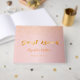 A guest book for a glamourous, elegant and modern wedding. A chic dusty rose gradient background with golden confetti sprinkle. The text: Guest Book is written with trendy faux gold letters. The names and date are written with a hand lettered style script, golden letters. Template for your text on the spine, grey text.