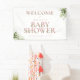 An elegant baby shower welcome banner sign featuring pretty dusty rose pink greenery lettering. Designed by Thisisnotme©