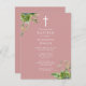 Dusty Rose Greenery Monogram Baptism Invitation Postcard