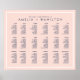 Our dusty rose wedding 18 table seating chart is designed in a modern minimal style with blush dusty pink and white, navy accepts. Beautiful pairing with modern san serif and elegant serif typography further enhances the modern minimal typographic design. Personalize the text, font and colours to suit your wedding design preferences.