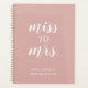 Custom-designed wedding planner notebook featuring "Miss to Mrs." modern hand script design on dusty rose background.