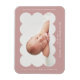Modern birth announcement magnet featuring your baby's photo nestled inside of a dusty rose scalloped frame. Personalize the dusty rose birth announcement magnet by adding your baby's name and additional information in white lettering.