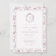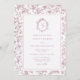 Add timeless elegance to your special day with this chinoiserie-inspired wedding invitation, featuring a delicate dusty rose floral toile border and an elegant monogram crest design on top.