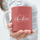 A reddish-pink, dusty rose coloured background. Personalize and add your first name and monogram initials.