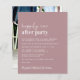 Simple budget-friendly dusty rose wedding announcement and reception invitation. The front features "Happily Ever After Party" in a mix of a white script and bold modern white typography. Personalize your wedding announcement and reception invitation in more detail and add your names in a signature-like script. The reverse side features your wedding photo, first names and wedding date.