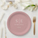 Dusty Rose Pink Chic Monogram Wedding Paper Plate