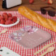 This elegant dusty rose pink transparent floral first holy communion paper plate can be personalized with your information in chic typography. Designed by Thisisnotme©