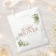 An elegant baby shower favour bag featuring chic dusty rose pink typography and pretty botanical greenery foliage. Designed by Thisisnotme©