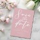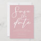 This dusty rose pink wedding Save the Date card features delicate white typography for a romantic afternoon ceremony for a feminine bride who likes soft colours and minimal script design. Soft pastel pink invites.