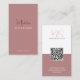 Boho Chic Dusty Rose Pink Calligraphy Script qr code modern minimalist Business Card. Personalize the monogram, script and details of this clean,simple feminine typography. Ideal for interior designers, event planner, wedding planners, consultants, makeup artist and beauty salons. A perfect card for your business!