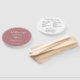 Wedding day program printed on a round style hand fan that features a trendy, dusty rose colour background on the front side with the bride and groom names in white, stylized script. Back side of program lists the wedding party participants and ceremony rites on a white background with dark grey lettering. Edit hand fan and replace wedding program info with your own. Perfect for an indoor or outdoor wedding ceremony! Select number of hand fan programs desired.