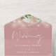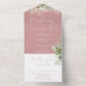 All in one dusty rose wedding invitation featuring pretty string lights, floral greenery and elegant typography. The invitation includes a perforated RSVP card that can be individually addressed or left blank for you to handwrite your guest's address details. Designed by Thisisnotme©