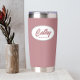 Gift your wedding bridesmaid with this trendy and personalized, stainless steel, thermal tumbler with her name in stylized script in a white oval design. Background colour and script is a dusty rose colour. Personalize your thermal tumbler by editing and replacing bridesmaid name with desired name. Available in many, popular bridesmaid wedding colour schemes.
