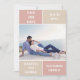 Dusty rose and taupe colour block wedding Save the Date card. The back includes a pattern with wide bands in dusty rose and taupe.