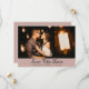 Elegant dusty rose wedding custom photo save the date cards featuring an engagement photo and a script on a dusty rose background. Personalized dusty rose wedding save the date cards. Customizable dusty rose wedding save the date cards. Script wedding save the date cards. Custom photo save the date cards.
