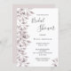 A trendy Bridal Shower invitation in white and dusty rose, pink. A chic white background on the front. Decorated with botanical dusty rose coloured sprigs and foliage. Modern large handlettered script, typography with the text: Bridal Shower. Templates for the bride's name and party details. Dark grey text.