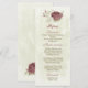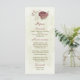Beautiful romantic wedding menu card featuring dusty rose and white flowers and some pretty leaves .