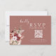 Modern dusty rosewood and burgundy blush floral RSVP card featuring a scannable QR code — a stylish way for guests to reply instantly online.