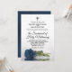 Dusty Steel Blue Rose Chic Modern Catholic Wedding Invitation