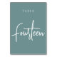Dusty Teal Hand Scripted Table FOURTEEN Table Number