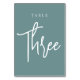 Simple and chic table number cards in dusty teal aqua and white make an elegant statement at your wedding or event. Design features "table [number]" in an eyecatching mix of classic serif and handwritten script lettering. Design repeats on both sides. Individually numbered cards sold separately; order each table number individually from our collection.