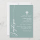 Celebrate the sacred occasion of a baptism with this elegant dusty teal invitation. Featuring a minimalist design with modern script and a delicate cross, this invitation is perfect for inviting friends and family to join in this special event. The soft colour and simple, clean lines add a touch of sophistication and grace, making it ideal for such a meaningful celebration. Customize the details to create a unique and memorable invitation for your child's baptism.