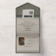 This unique wedding invitation design invites your guests to your travel wedding in style. The top page of the passport book contains your invitation, with a ticket appearing to peek out from behind it. Add your QR code to easily take guests to your wedding site. The bottom portion of the invitation tears off, giving your guests an rsvp postcard to return.