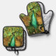 Dutch Art Nouveau Peacock and Chickens Oven Mitt & Pot Holder Set