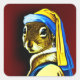 Dutch Baroque Art Squirrel With A Pearl Earring Square Sticker